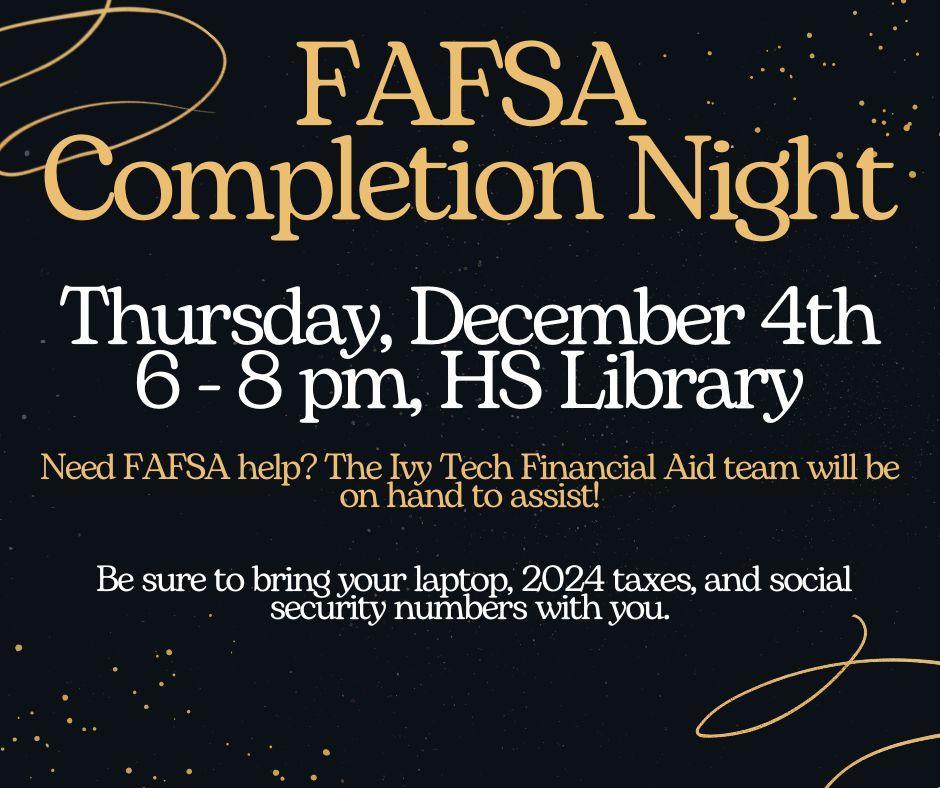 Senior Parent FAFSA Completion Night 12/4